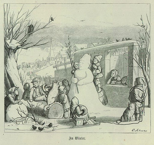 Recently on one of my writers groups had a lively discussion regarding whether or not people built snowmen during the Regency. After all, it seems such a natural thing to do with a practically limitless source of building materials. Surely people had as strong a desire then as they do now to build snowmen, forts, animals, and simple snowballs to throw at one another using the nature’s art supplies. However, often our assumptions about what has “always been” is incorrect, hence the discussion.